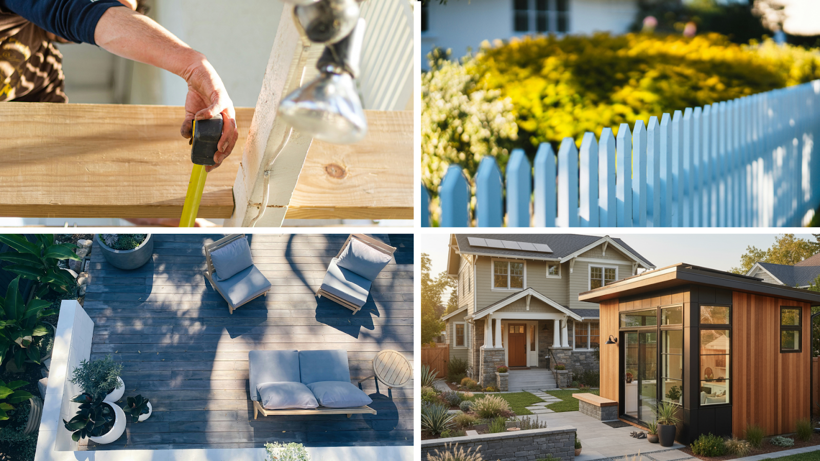 Includes landscaping, roofing, siding, deck building, fencing, ADUs (Accessory Dwelling Units), and pool construction